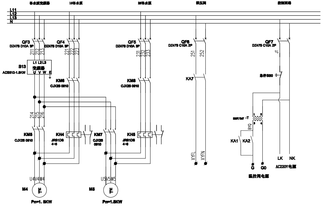 图3.5 该小区就地变频柜补水泵控制回路图