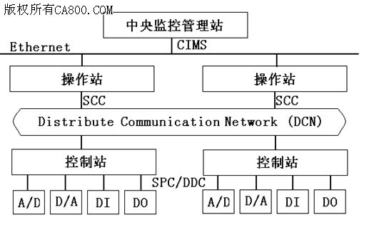 数据采集系统(DAS),数据采集系统(Data Acquisition System)是计算机应用于生产过程控制最早、也是最基本的一种类型。生产过程中被控对象的大量参数经测量变送仪表发送和A/D通道或DI通道巡回采集后送入计算机,由计算机对这些数据进行分析和处理,并按操作要求进行屏幕显示、制表打印和越限报警。计算机不直接参与控制过程。     操作指导控制系统(OGC),操作指导控制系统是基于数据采集系统的一种开环结构。计算机根据采集到的数据以及工艺要求进行最优化计算,计算出的最优操作条件,并不直接输出控制被控对象,而是显示或打印出来,操作人员据此去改变各个控制器的给定值或操作执行器,以达到操作指导的作用。它相当于模拟仪表控制系统的手动与半自动工作状态。OGC系统的优点是结构简单,控制灵活和安全。缺点是要由人工操作,速度受到限制,不能同时控制多个回路。     直接数字控制系统(DDC),DDC系统是用一台计算机不仅完成对多个被控参数的数据采集,而且能按一定的控制规律进行实时决策,并通过过程输出通道发出控制信号,实现对生产过程的闭环控制,为了操作方便,DDC系统还配置一个包括给定、显示、报警等功能的操作控制台。DDC系统中的一台计算机不仅完全取代了多个模拟调节器,而且在各个回路的控制方案上,不改变硬件只通过改变程序就能有效地实现各种各样的复杂控制。     监督计算机控制系统(SCC),监督计算机控制系统即SCC是OGC系统与常规仪表控制系统或与DDC系统综合而成的两级系统。显然,这属于计算机在线最优控制的一种形式。当上位机出现故障时,可由下位机独立完成控制。下位机直接参与生产过程控制,要求其实时性好,可靠性高和抗干扰能力强;而上位机承担高级控制与管理任务,应配置数据处理能力强,存储容量大的高档计算机。   分散控制系统(dcs),分散控制系统--是以微处理器为基础,借助于计算机网络对生产过程进行集中管理和分散控制的先进计算机控制系统。由于早期开发的分散控制系统在体系结构上具有分散式系统的特征,因此国外将该类系统取名为分散控制系统,国内也有人将其称为集散型控制系统,或者是分布式控制系统。分散控制系统简称为DCS。DCS 采用分散控制、集中操作、分级管理、分而自治和综合协调的设计原则。    现场总线控制系统(FCS),现场总线控制系统即FCS--是新一代分布式控制结构。该系统改进了DCS成本高和由于各厂商的产品通信标准不统一而造成的不能互联等弱点,采用集管理控制功能于一身的工作站与现场总线智能仪表的二层结构模式,把原DCS控制站的功能分散到智能型现场仪表中去,形成一个彻底的分散控制模式。每个现场仪表(例如变送器、执行器)都作为一个智能节点,都带CPU单元,可分别独立完成测量、校正、调节、诊断等功能,靠网络协议把它们连接在一起统筹工作。